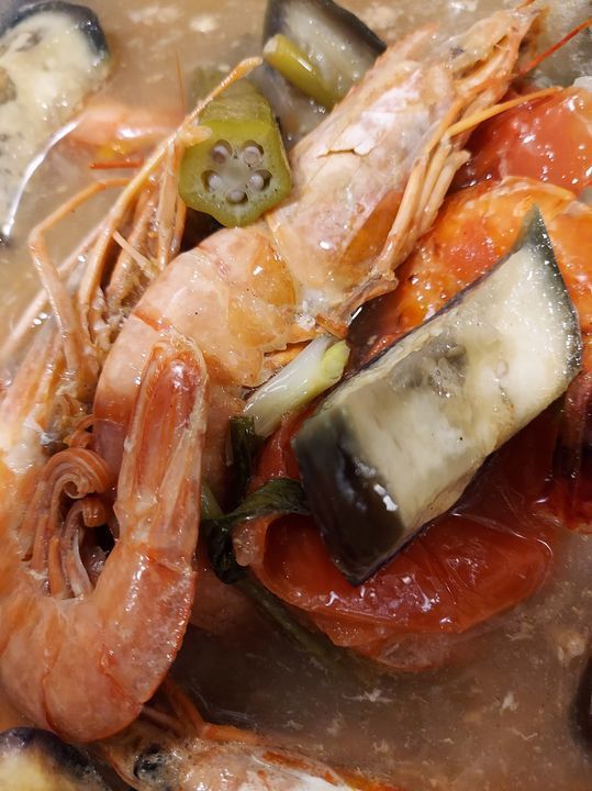 Sinigang na sugpo at arroz caldo